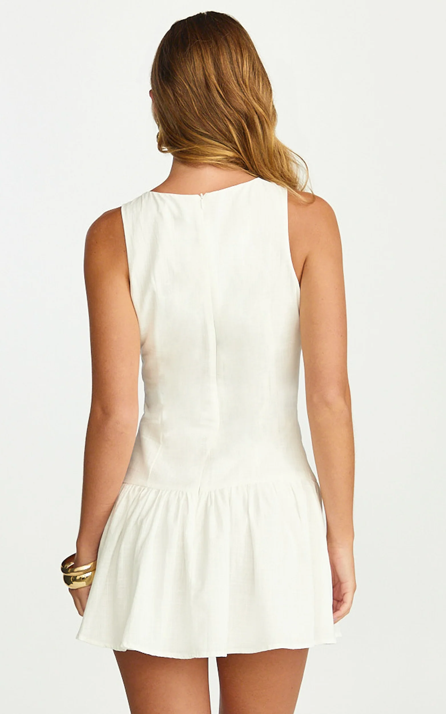 Izira Mini Dress - Boat Neck Drop Waist Shift Dress in White