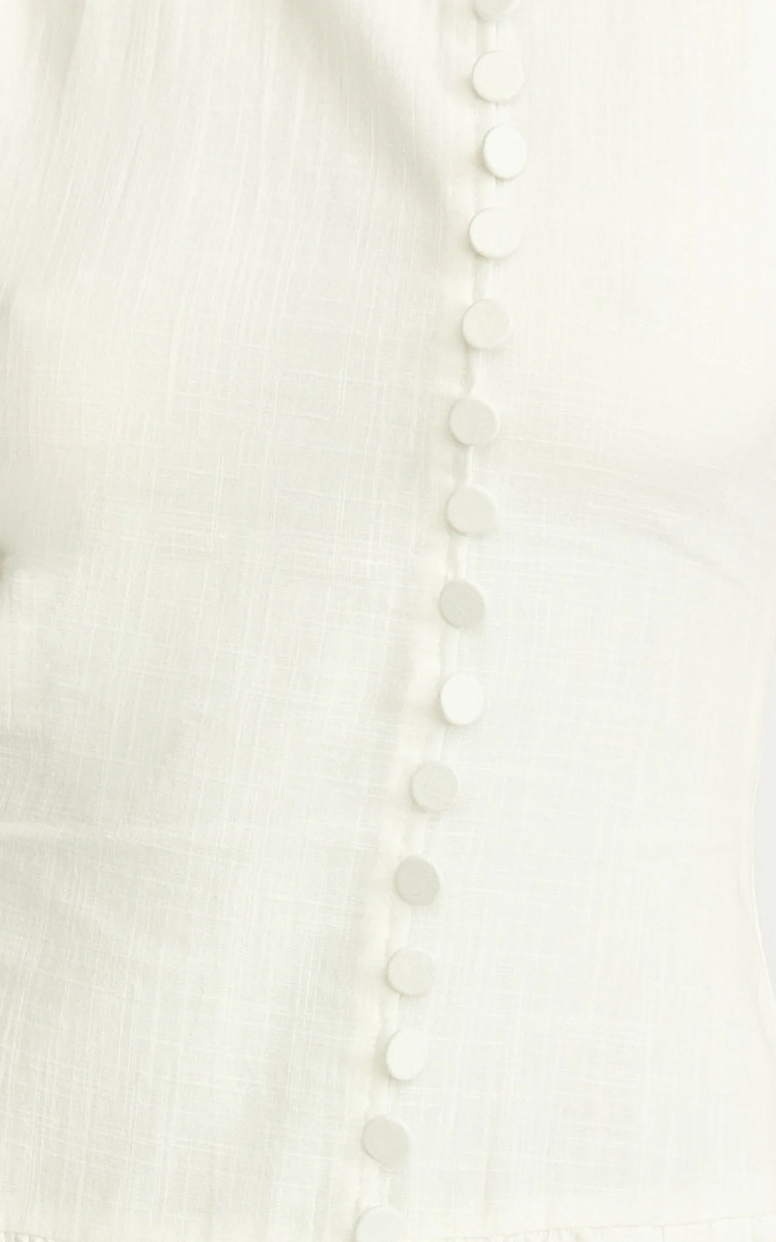 Cortez Mini Dress - High Neck Button Down Dress in White