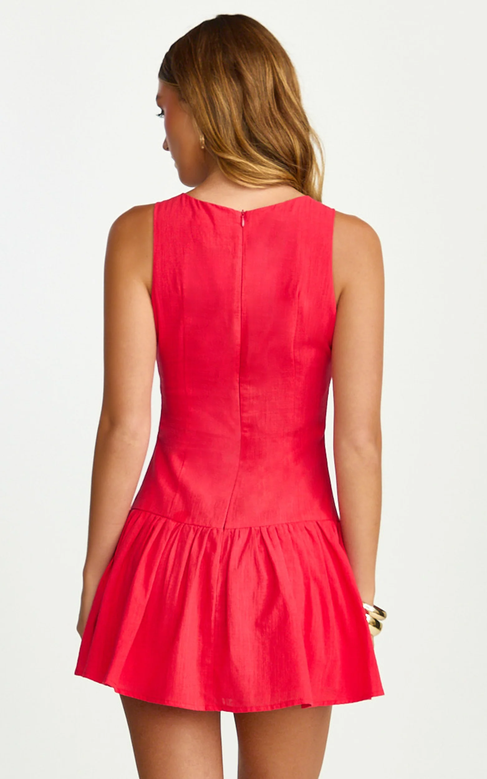 Gigi Mini Linen Blend Dress - Sweetheart Tie Back Scallop Detail Dress in Red