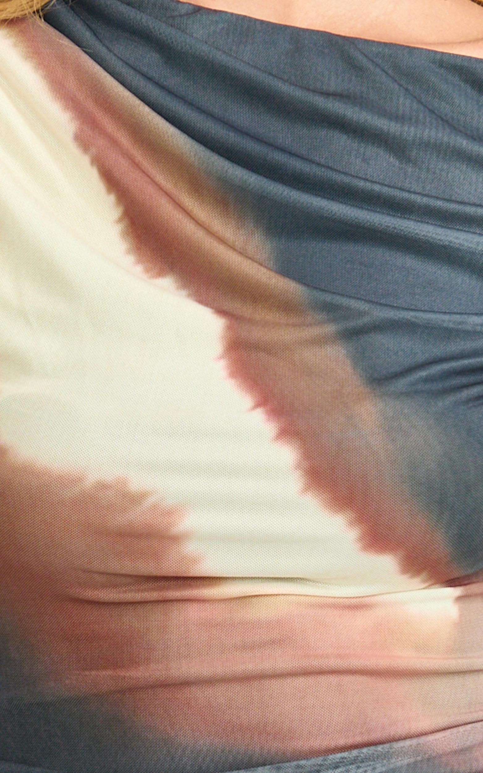Bella Mini Dress - Mesh Off Shoulder Dress in Rust Print