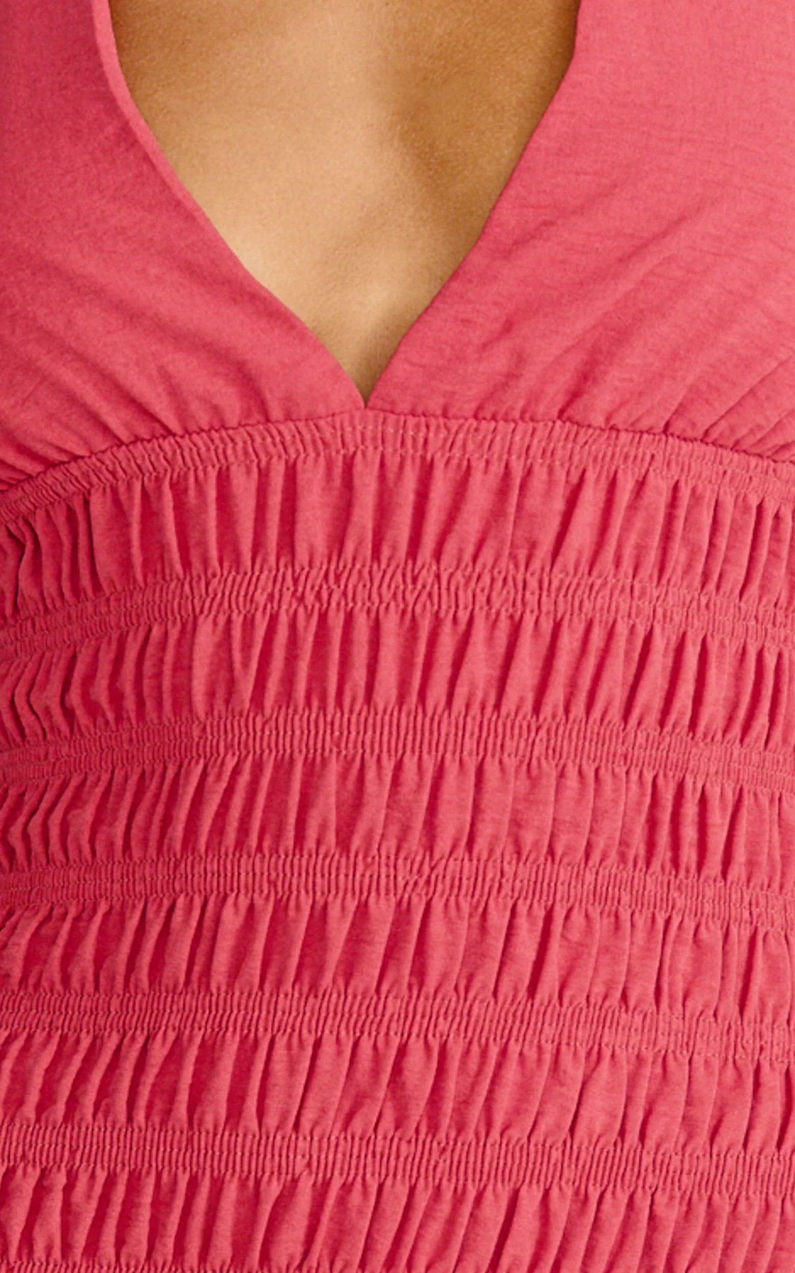 Giselle Mini Dress - Halter Neck Shirred Frilled Hem Fit And Flare Dress in Rose