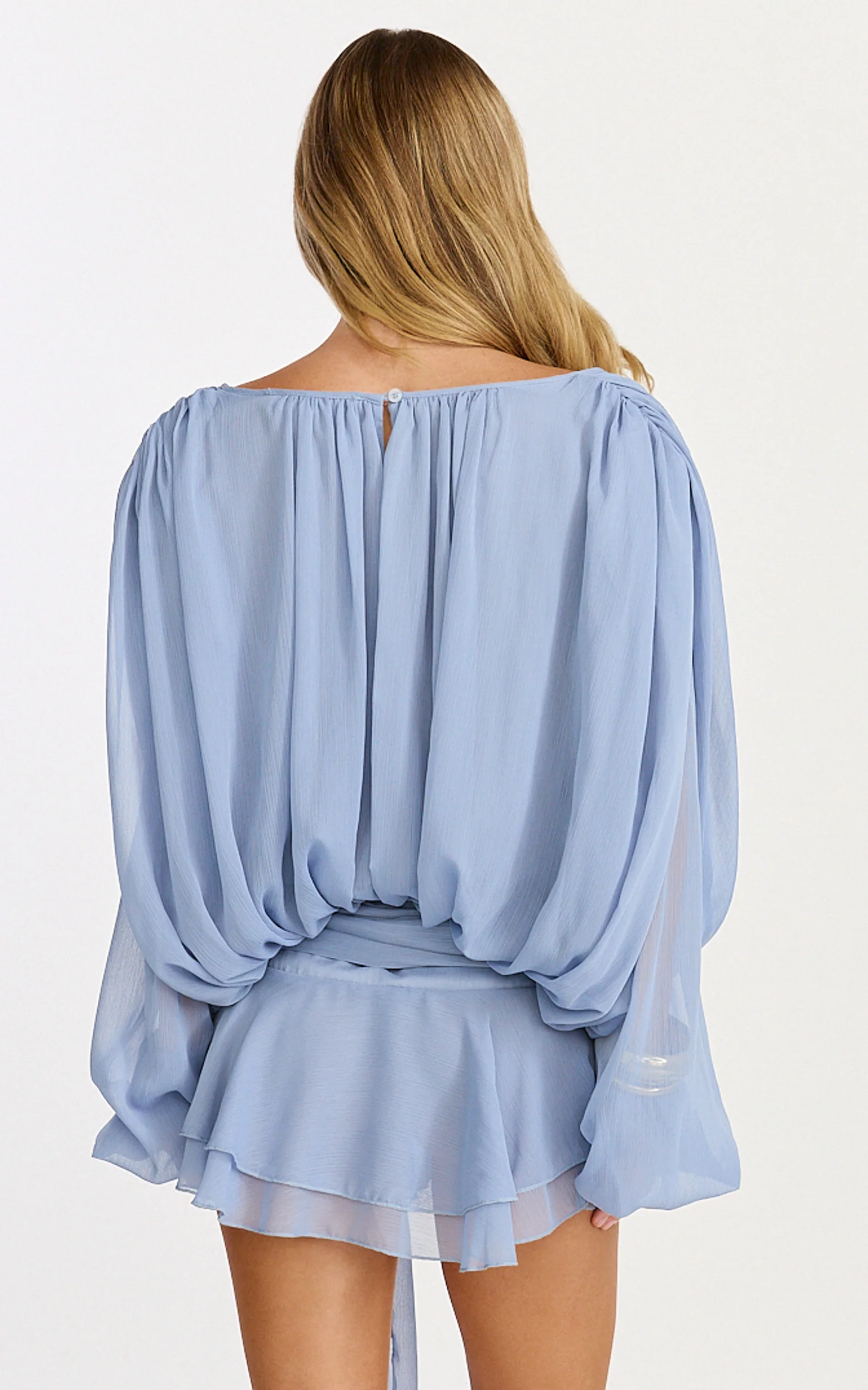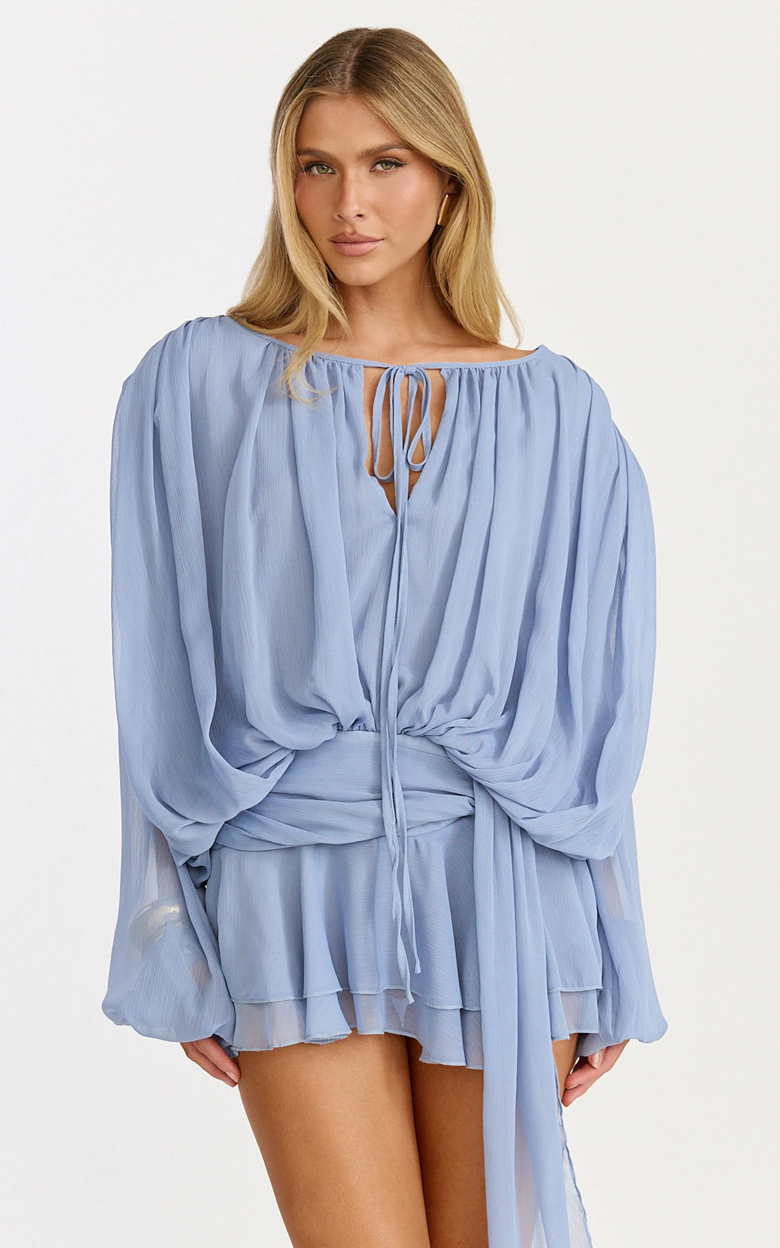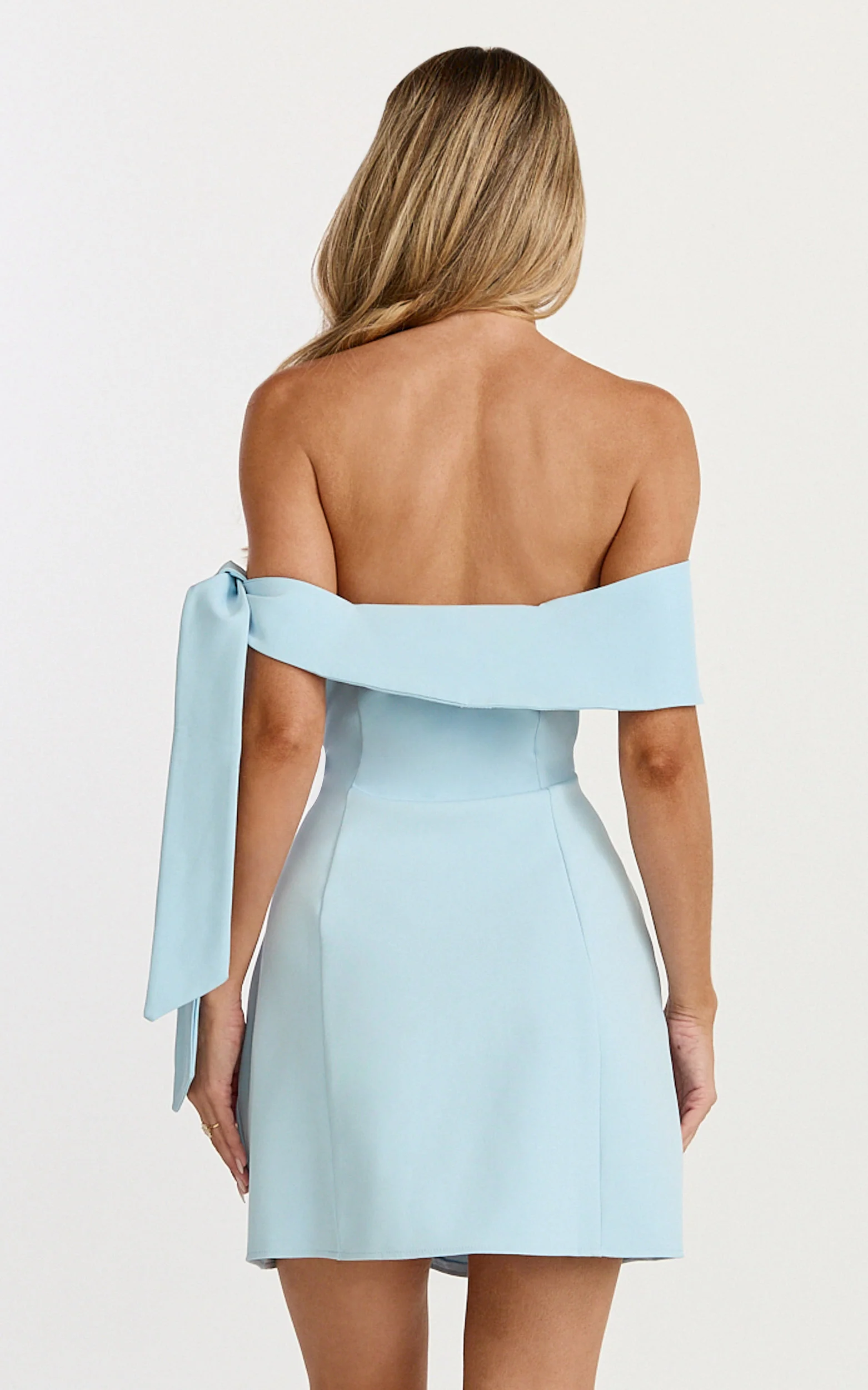 Cecilia Mini Dress - Off Shoulder Tie Detail Dress in Pale Blue