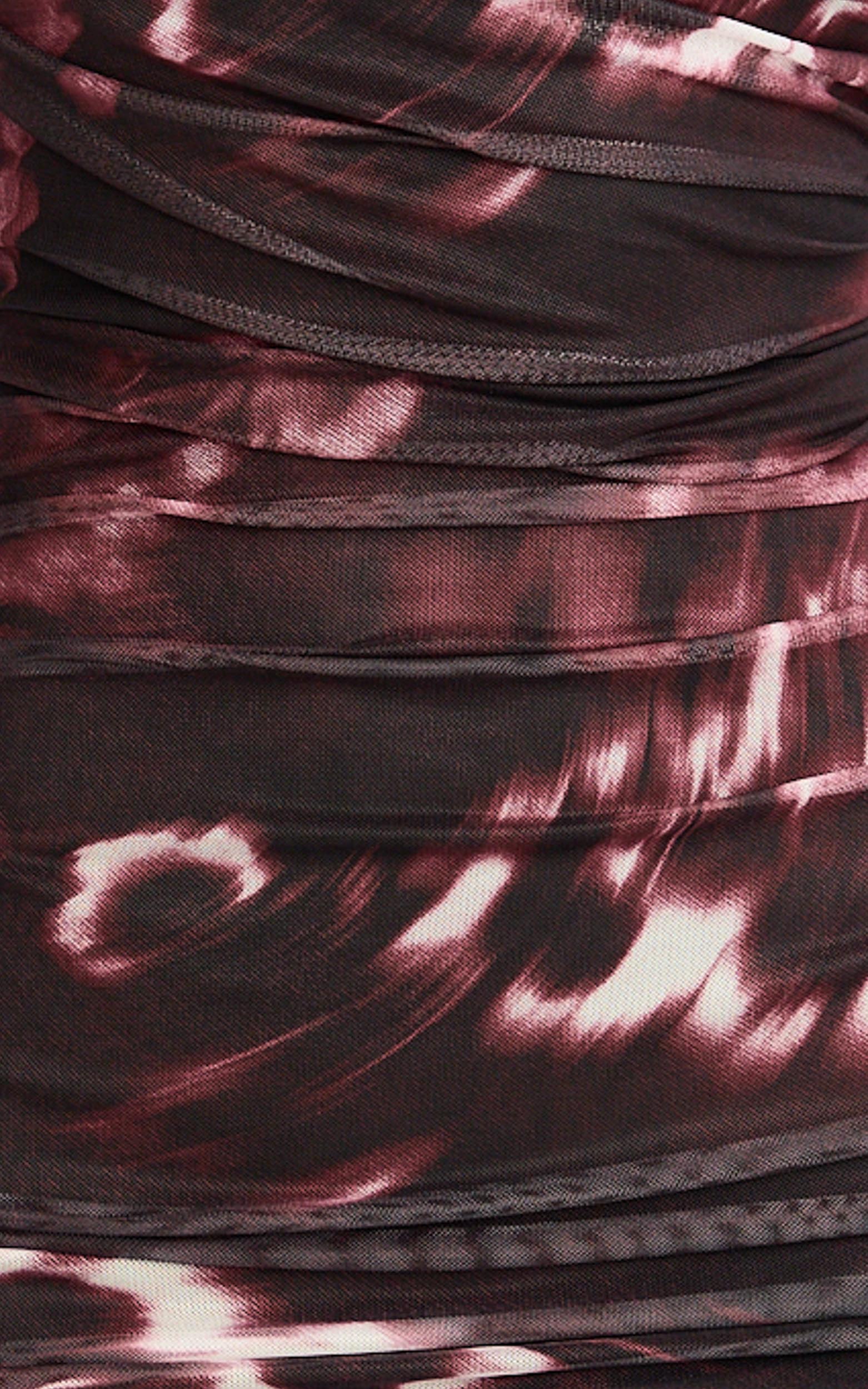 Zita Mini Dress - High Neck Long Sleeve Bodycon Mesh Dress in Botanical Haze