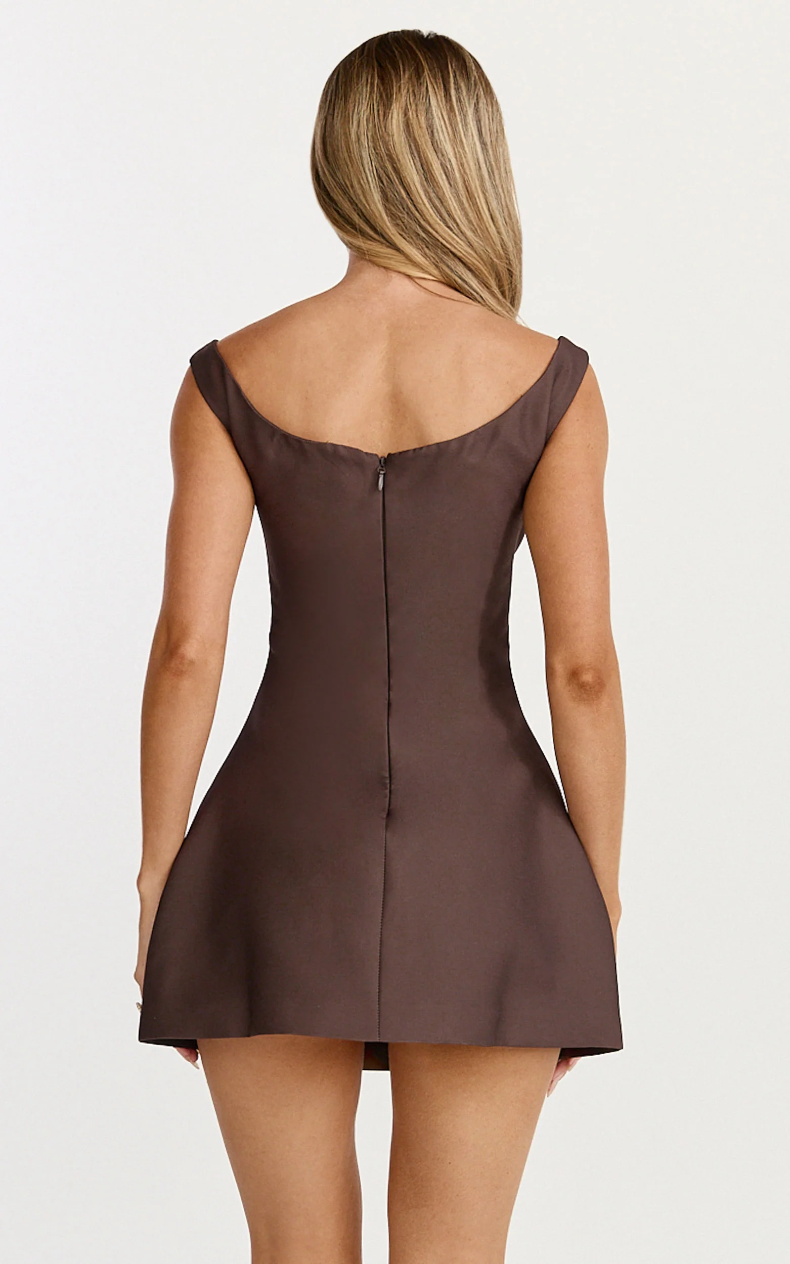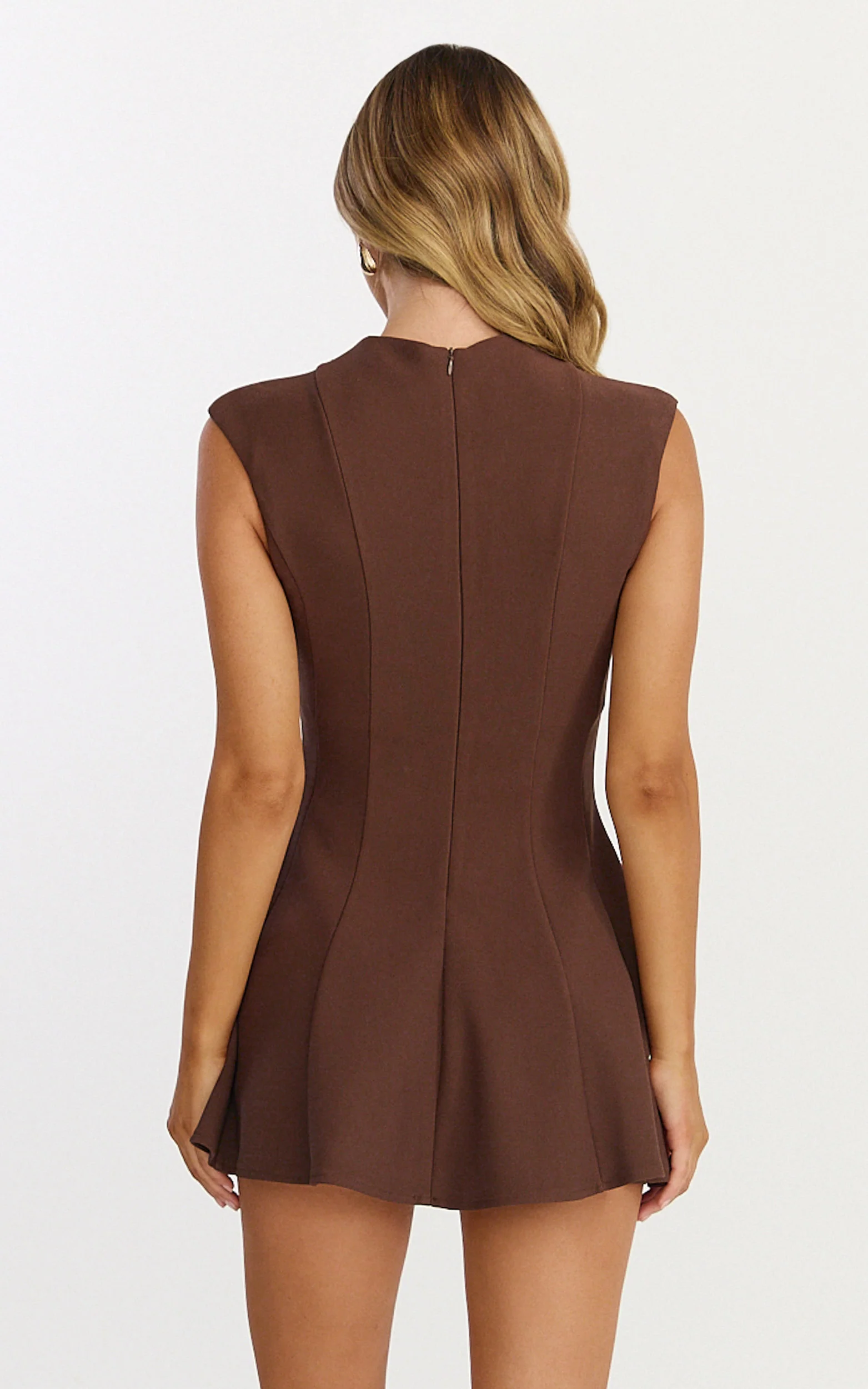 Becky Mini Dress - High Neck Sleeveless Fit And Flare Dress in Chocolate