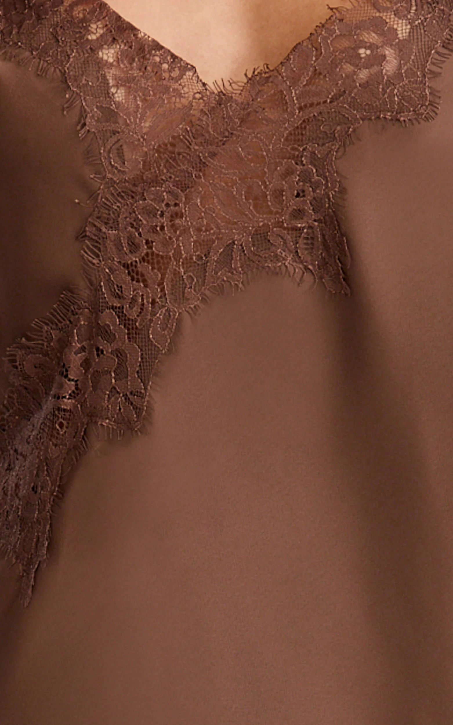 Iris Mini Dress - Lace Trim Asymmetrical Camisole Dress in Chocolate