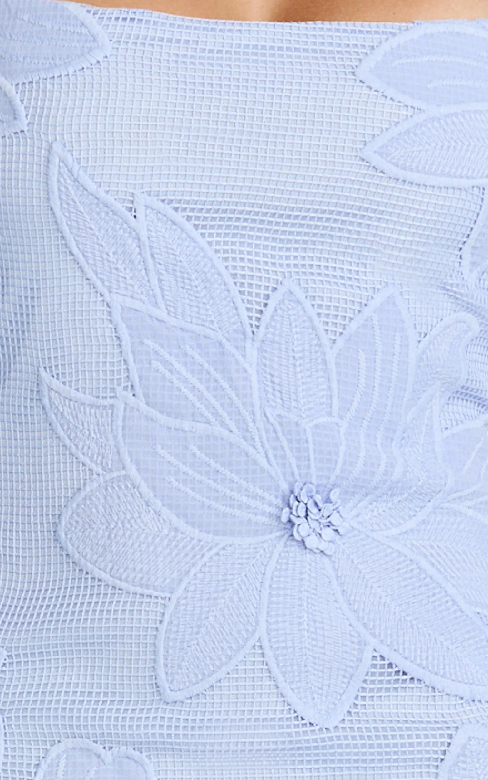 Sienna Mini Dress - Square Neck Floral Embroidered A Line Dress in Blue