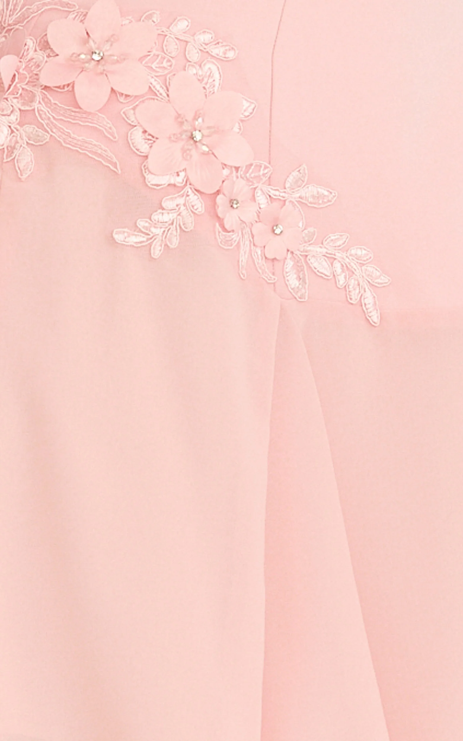 Penny Mini Dress - Strapless Corset Bodice Floral Embellished Godet Dress in Soft Pink