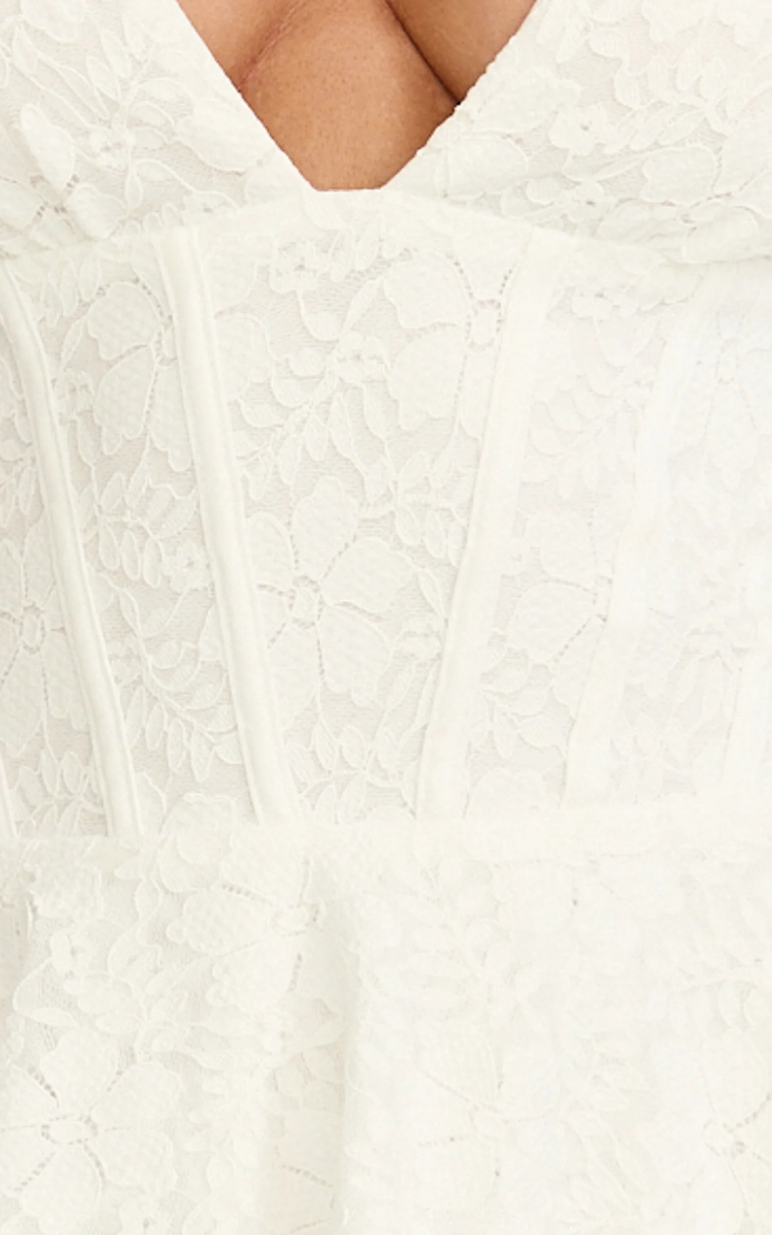 Lacey Mini Dress - Lace Corset Style Bodice Halter Dress in White