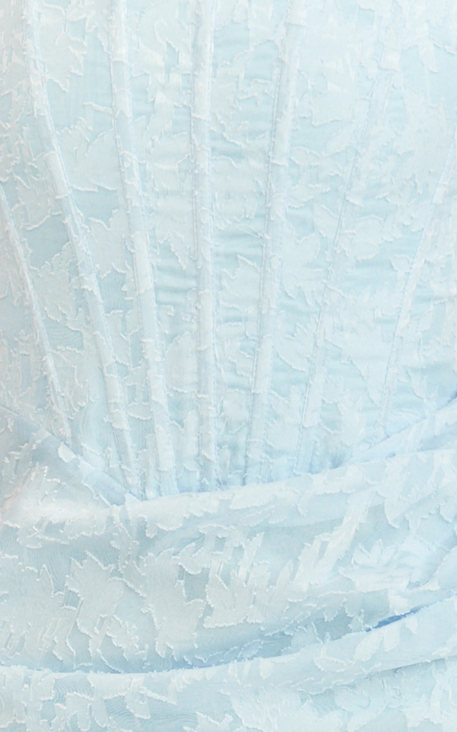 Rachel Mini Dress - Strapless Corset Bodice Draped Skirt Dress in Ice Blue