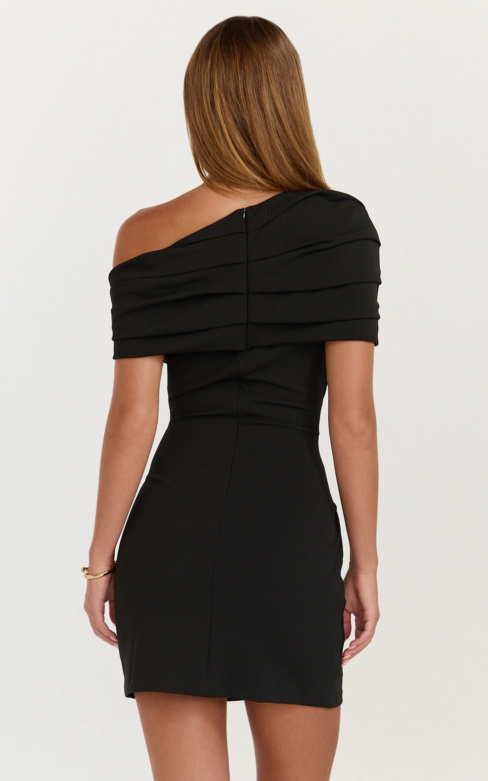 Kairose Mini Dress - Asymmetrical Sleeve Dress in Black