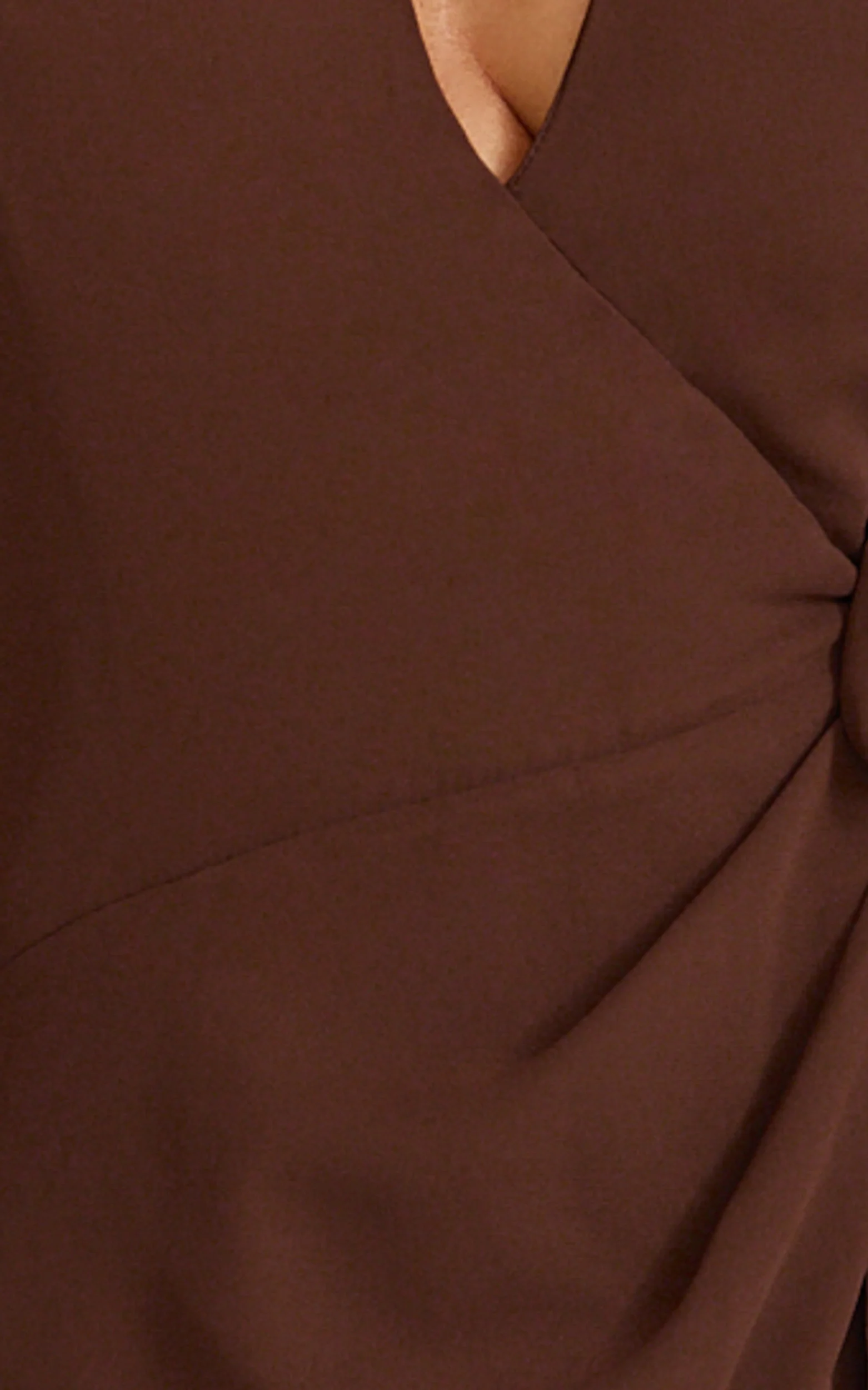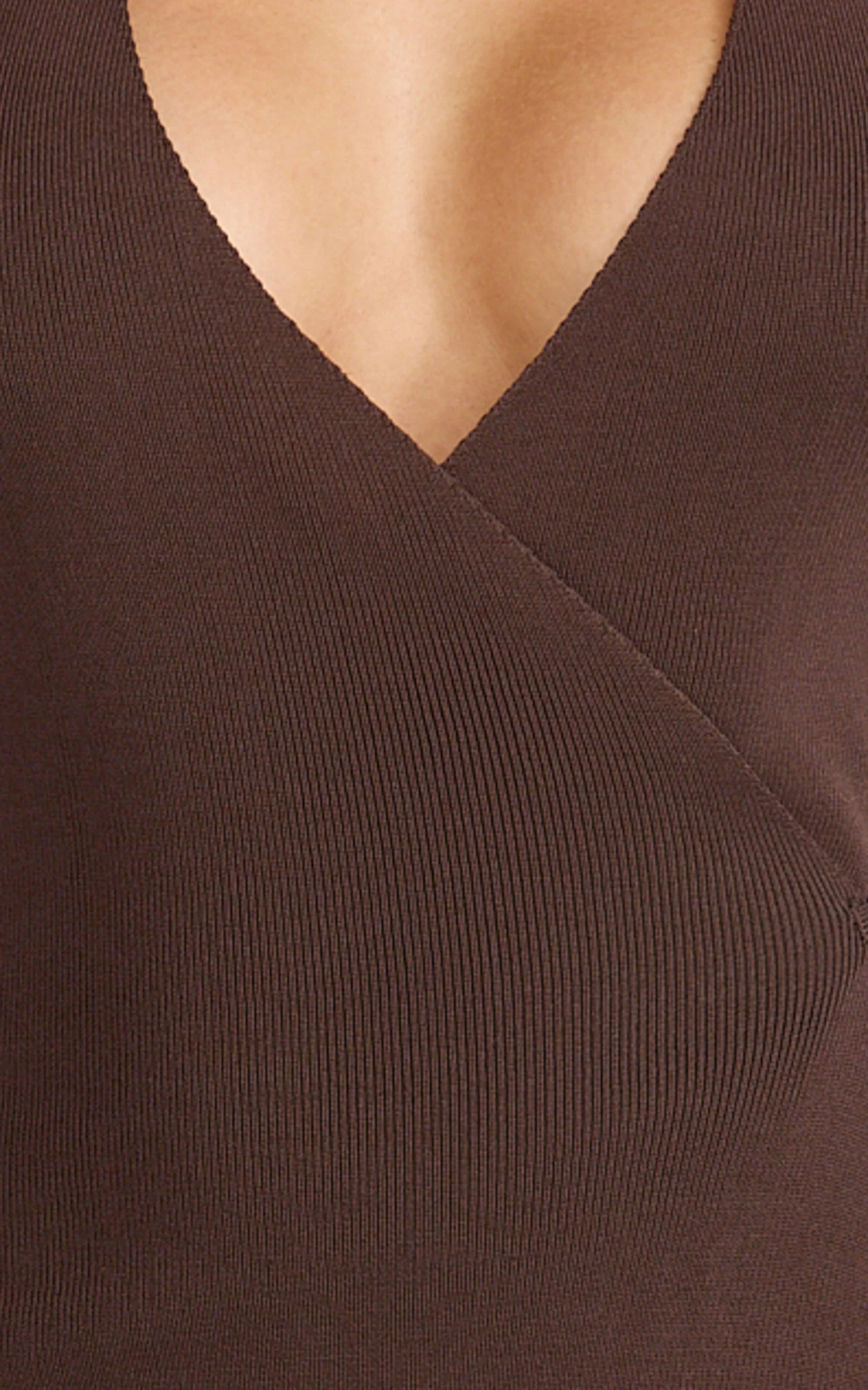 Callista Mini Dress - Knit Halter Neck Wrap Dress in Chocolate