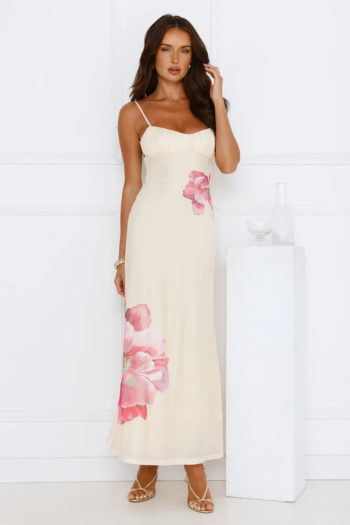 Glow in the Paradise Glow Mesh Midi Dress, featuring a figure-hugging stretch mesh, a vibrant floral print, and a stunning twist-back design with a flirty open back for the ultimate sun-kissed look! Style with heels.