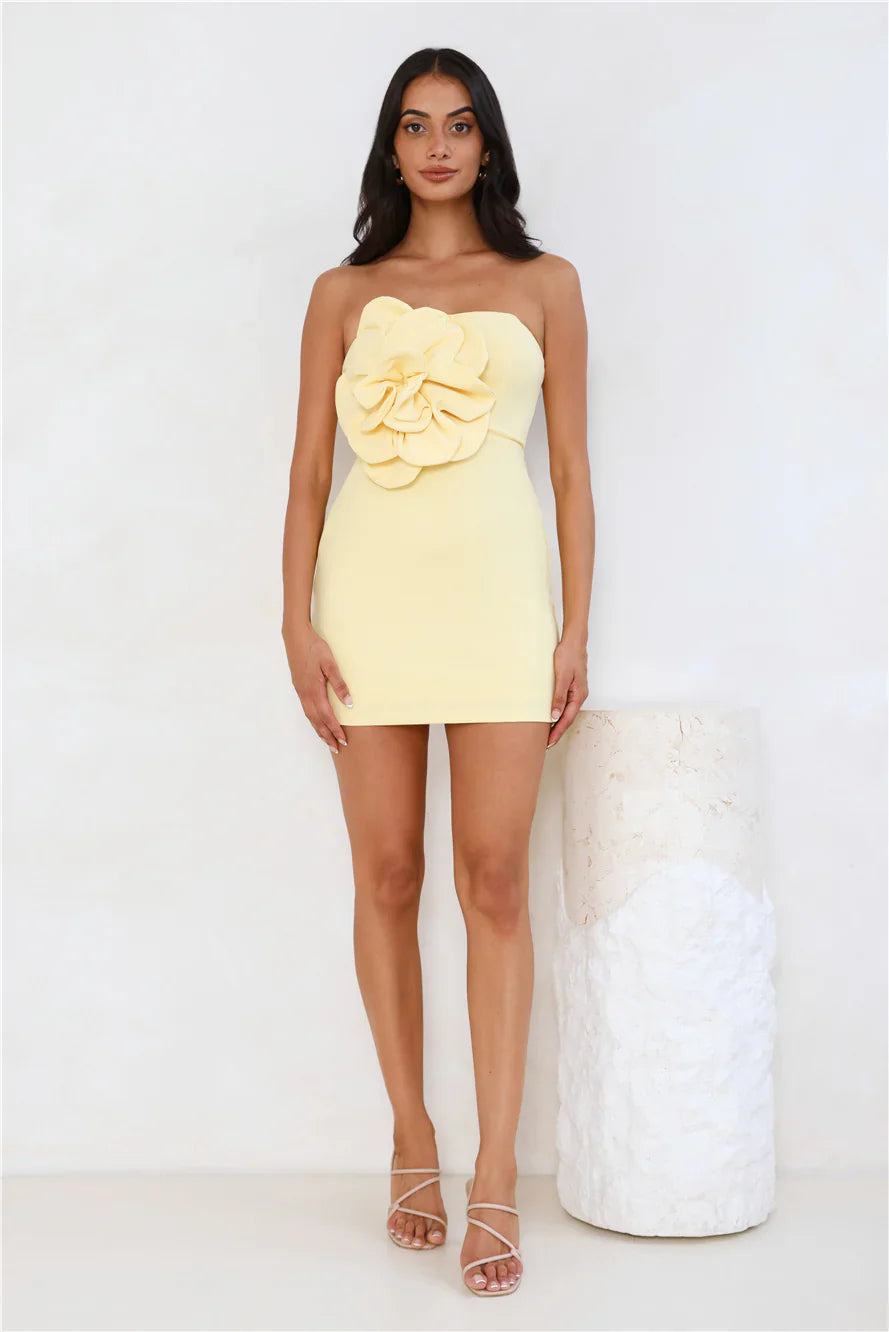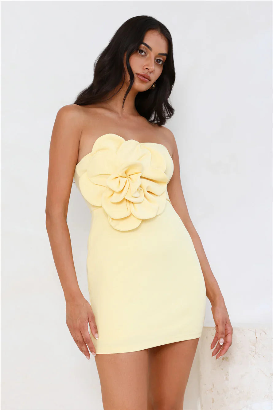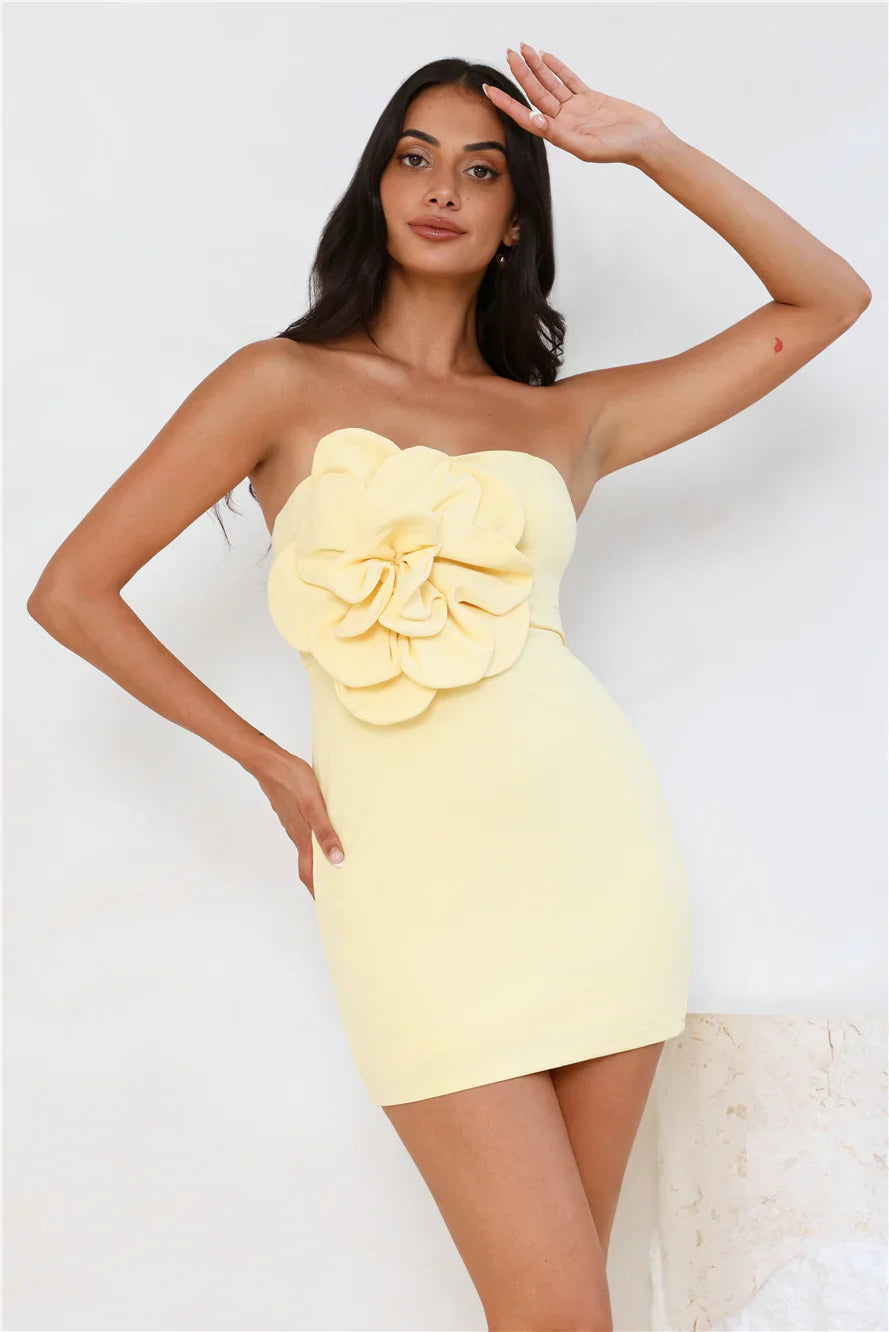 Stylish statements are made in the Wild Ivy Strapless Mini Dress. It features a strapless neckline, a floral applique and boning to the bodice. Style with heels for a party and impress.