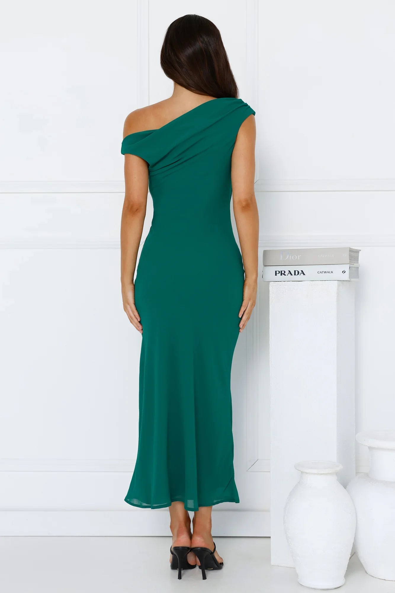 Dress to impress in the Xenia Off Shoulder Midi Dress. Featuring an off-the-shoulder strap and a straight, flowy skirt. Style with heels for a fancy event!